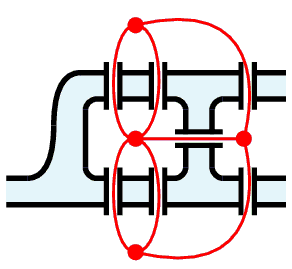 さて、橋渡りのクイズは、このグラフで出発点に戻る一筆書きができるか、という問題に言い換えることができます。 そしてオイラー先生は「一筆書きの定理」を証明することによって、橋渡りが不可能であることを証明しました: