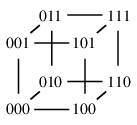 $k$ 次元立方体の頂点と辺から作ったグラフです。 言葉を変えるとこういう定義もできます:![]() |