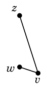 もし $A$ の2頂点 $v$, $w \in A$ が隣接すると仮定すると、 最短の $u$-$v$ 道、最短の $u$-$w$ 道と辺 $vw$ の絵はこのような状態になっています: