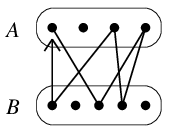 とおきましょう。$G$ は連結なので $V=A \cup B$ となっています。 $A$ の頂点同士、$B$ の頂点同士は隣接しないことを示します。