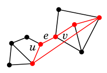 Th.5 の証明 (1) ⇒ (2) 辺 $e$ をひとつ取ります。