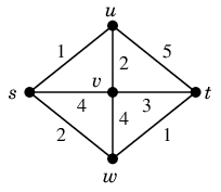 • 入力:連結な重み付きグラフ $G$ と、出発点 $s$、目的地 $t$