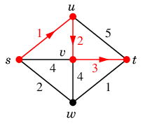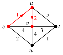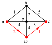 しかし本当の最短路は $s \rightarrow w \rightarrow t$ ですから、 欲張りさんのアルゴリズムでは見つけられません。