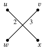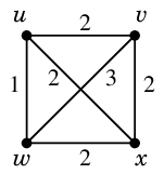 (3) $ux$ と $vw$ を二重化 $\Rightarrow$ 重みは 5 増える |