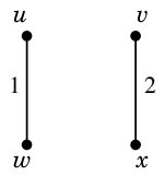 奇数次数の頂点が $u$, $v$, $w$, $x$ の 4 個であれば、