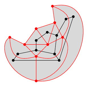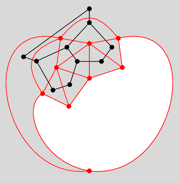 それぞれの連結成分に属する $G$ の頂点に対応する $G\as$ の面たちは、 全平面を2つに分割します (図では左側が外面を含む方です)。