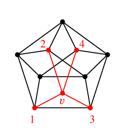$G'=G-v$ を 5 色で点彩色しておく | |