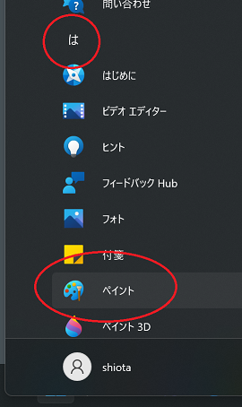 スタートボタン → すべてのアプリ → ペイント ( Win11 )