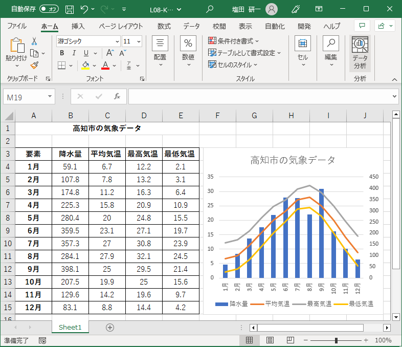 気象データを Web から取り込んでグラフを作ってみましょう。