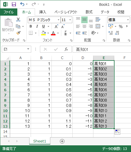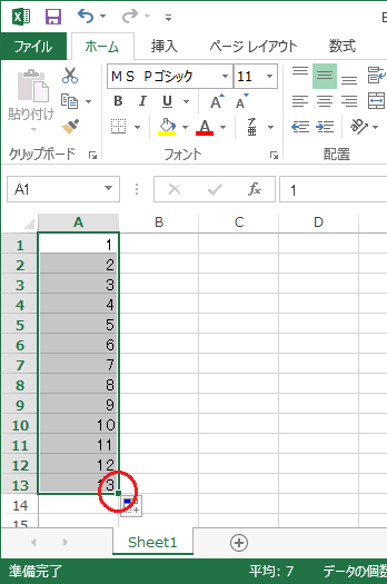 • セル1つだけを引っ張れば同じデータがコピーされます。