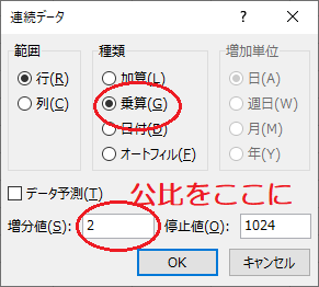 • この方法なら、等差数列だけでなく等比数列も作れます。