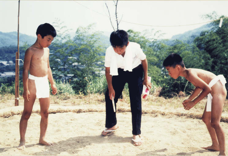 うしがみさまを おまつりして おすもうを ほうのう するのが うしがみまつり。